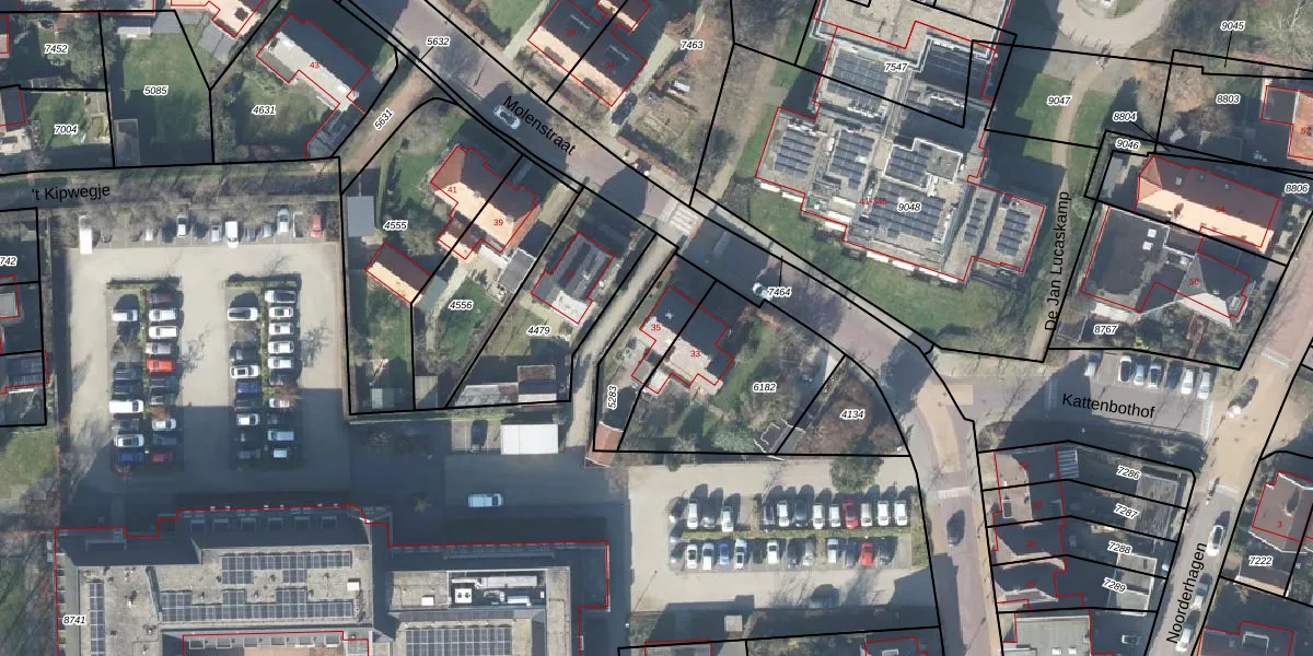 Het perceel waarop Molenstraat 35 staat heeft een oppervlakte van 213 m². Dit is een middelgroot perceel. De perceeloppervlakte wordt geregistreerd door het Kadaster. Gedetailleerde informatie over de maten van dit perceel kunt u vinden in het rapport Kadastrale kaart met maatvoering van Molenstraat 35.