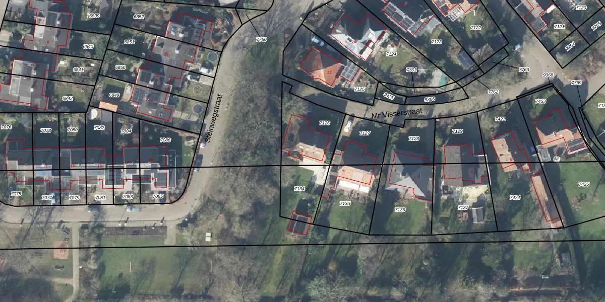 Het perceel waarop Mr Visserstraat 9 staat heeft een oppervlakte van 401 m². Dit is een groot perceel. De perceeloppervlakte wordt geregistreerd door het Kadaster. Gedetailleerde informatie over de maten van dit perceel kunt u vinden in het rapport Kadastrale kaart met maatvoering van Mr Visserstraat 9.