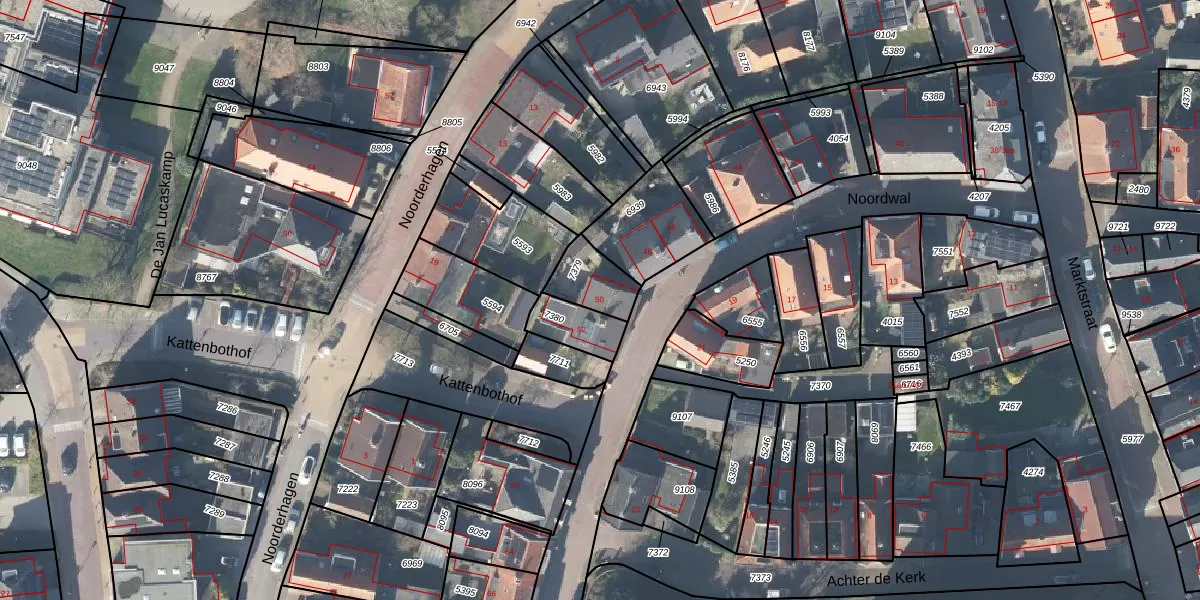 Het perceel waarop Noordwal 50 staat heeft een oppervlakte van 128 m². Dit is een middelgroot perceel. De perceeloppervlakte wordt geregistreerd door het Kadaster. Gedetailleerde informatie over de maten van dit perceel kunt u vinden in het rapport Kadastrale kaart met maatvoering van Noordwal 50.