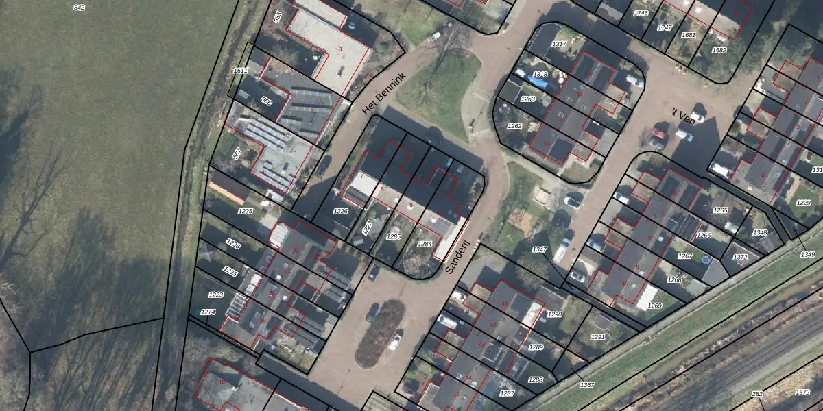 Sanderij 9 is gelegen op kadastraal perceel DDN02B1285. Deze kadastrale aanduiding is uniek en wordt gebruikt door het Kadaster om eigendomsrechten en andere zakelijke rechten vast te leggen. Het perceel maakt onderdeel uit van de kadastrale gemeente Stad-Delden.