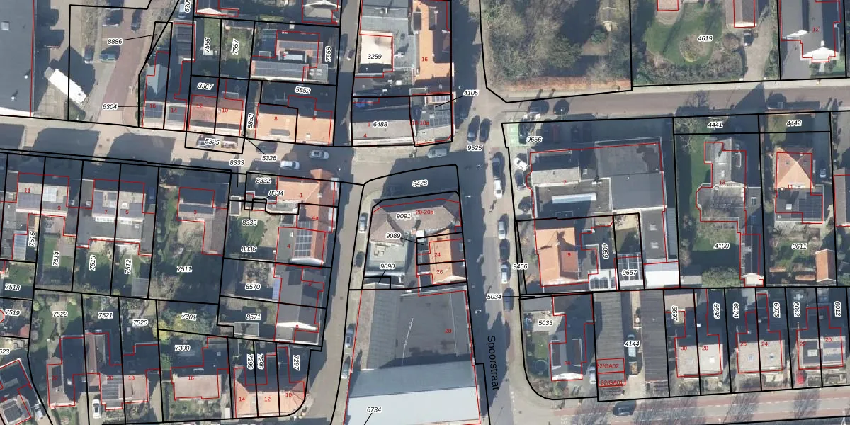Spoorstraat 20 is gelegen op kadastraal perceel DDN02A9091. Deze kadastrale aanduiding is uniek en wordt gebruikt door het Kadaster om eigendomsrechten en andere zakelijke rechten vast te leggen. Het perceel maakt onderdeel uit van de kadastrale gemeente Stad-Delden.