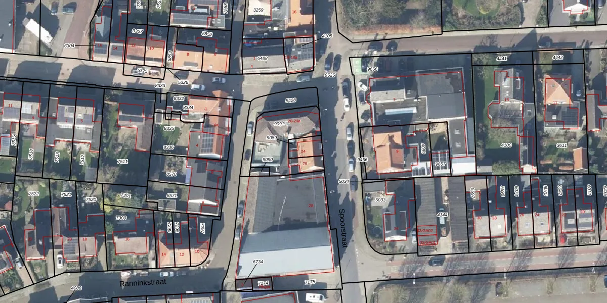 Spoorstraat 24 is gelegen op kadastraal perceel DDN02A9089. Deze kadastrale aanduiding is uniek en wordt gebruikt door het Kadaster om eigendomsrechten en andere zakelijke rechten vast te leggen. Het perceel maakt onderdeel uit van de kadastrale gemeente Stad-Delden.