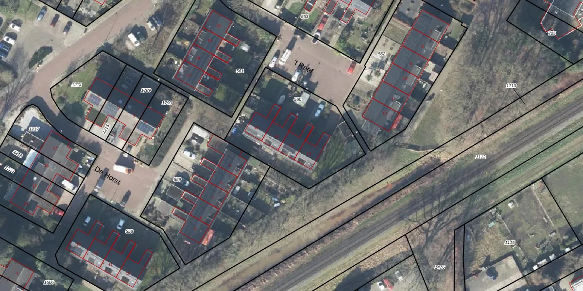 Het perceel waarop 't Reef 14 staat heeft een oppervlakte van 1104 m². Dit is een zeer groot perceel. De perceeloppervlakte wordt geregistreerd door het Kadaster. Gedetailleerde informatie over de maten van dit perceel kunt u vinden in het rapport Kadastrale kaart met maatvoering van 't Reef 14.