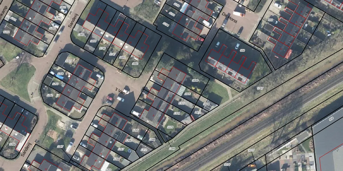 Gebruik de zoekbalk of klik op een perceel voor informatie over de adressen binnen dit perceel.