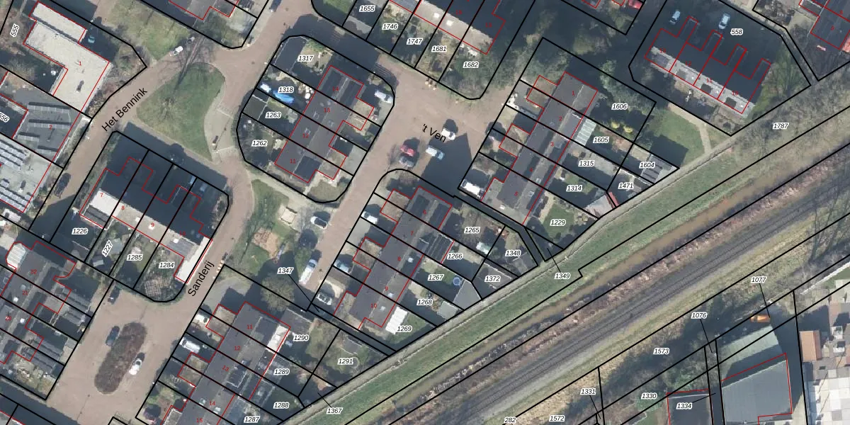 Gebruik de zoekbalk of klik op een perceel voor informatie over de adressen binnen dit perceel.