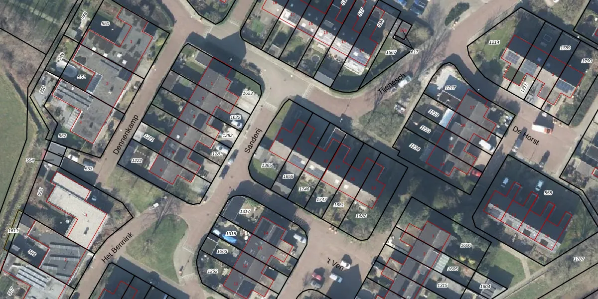 Gebruik de zoekbalk of klik op een perceel voor informatie over de adressen binnen dit perceel.