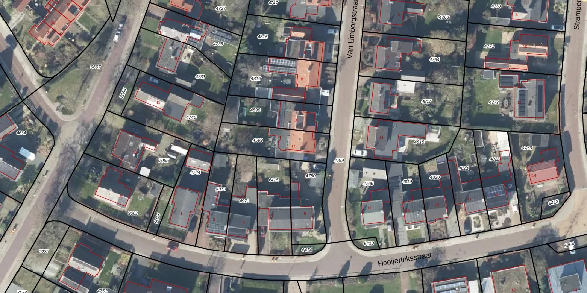 Gebruik de zoekbalk of klik op een perceel voor informatie over de adressen binnen dit perceel.