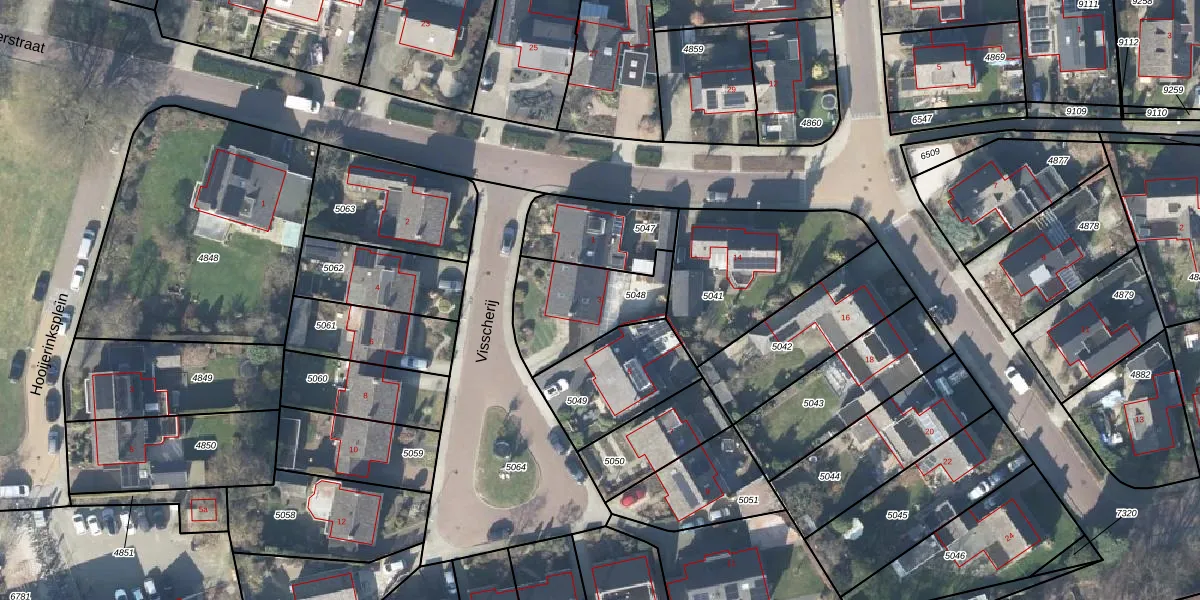 Het perceel waarop Visscherij 3 staat heeft een oppervlakte van 340 m². Dit is een groot perceel. De perceeloppervlakte wordt geregistreerd door het Kadaster. Gedetailleerde informatie over de maten van dit perceel kunt u vinden in het rapport Kadastrale kaart met maatvoering van Visscherij 3.