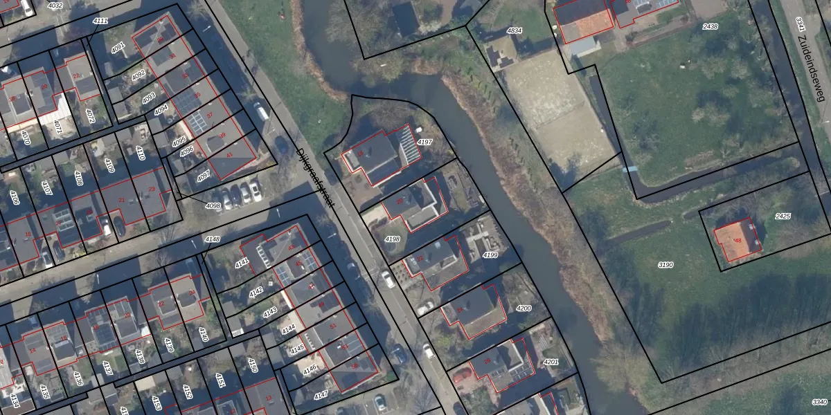 Het perceel waarop Dijkgraafstraat 20 staat heeft een oppervlakte van 409 m². Dit is een groot perceel. De perceeloppervlakte wordt geregistreerd door het Kadaster. Gedetailleerde informatie over de maten van dit perceel kunt u vinden in het rapport Kadastrale kaart met maatvoering van Dijkgraafstraat 20.