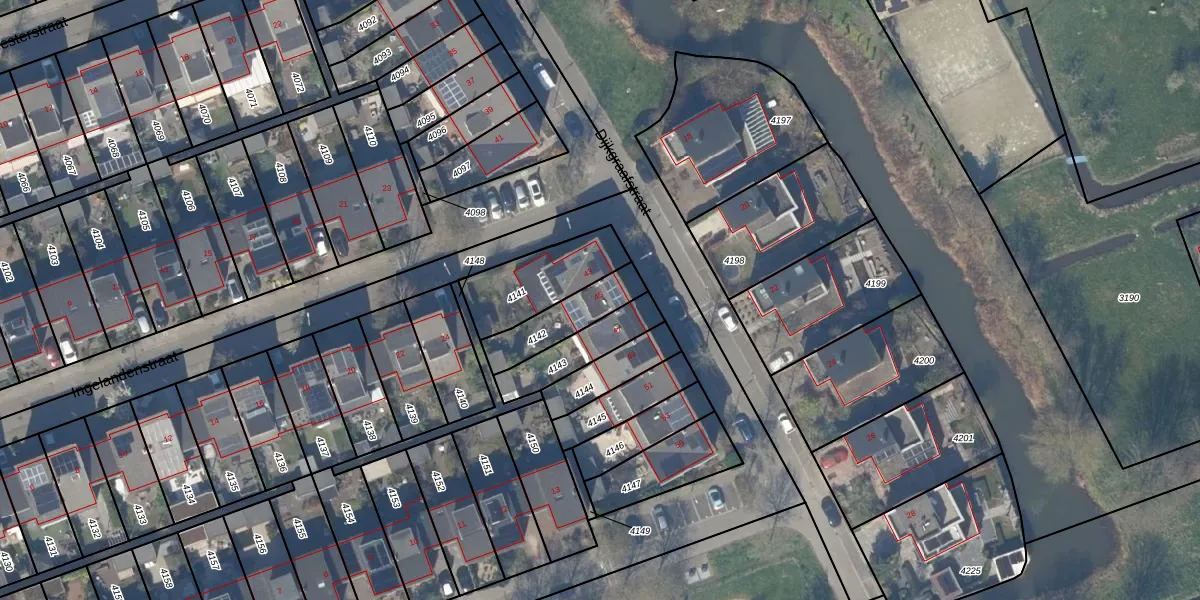 Het perceel waarop Dijkgraafstraat 45 staat heeft een oppervlakte van 169 m². Dit is een middelgroot perceel. De perceeloppervlakte wordt geregistreerd door het Kadaster. Gedetailleerde informatie over de maten van dit perceel kunt u vinden in het rapport Kadastrale kaart met maatvoering van Dijkgraafstraat 45.