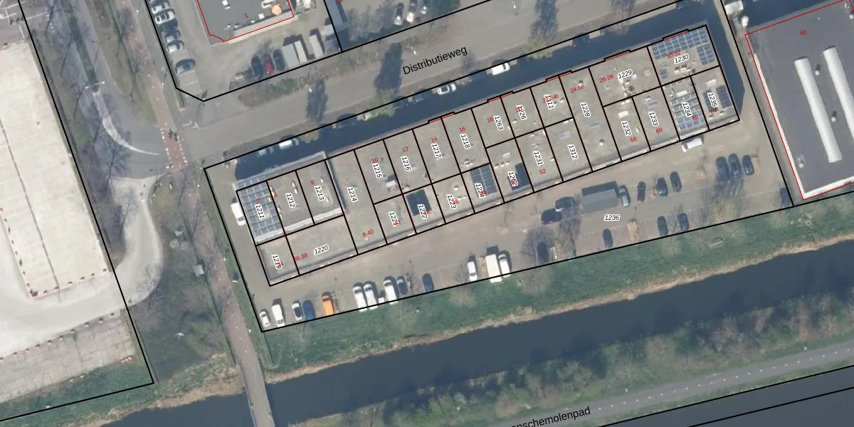 Distributieweg 44 is gelegen op kadastraal perceel PAK00H1222. Deze kadastrale aanduiding is uniek en wordt gebruikt door het Kadaster om eigendomsrechten en andere zakelijke rechten vast te leggen. Het perceel maakt onderdeel uit van de kadastrale gemeente Pijnacker.