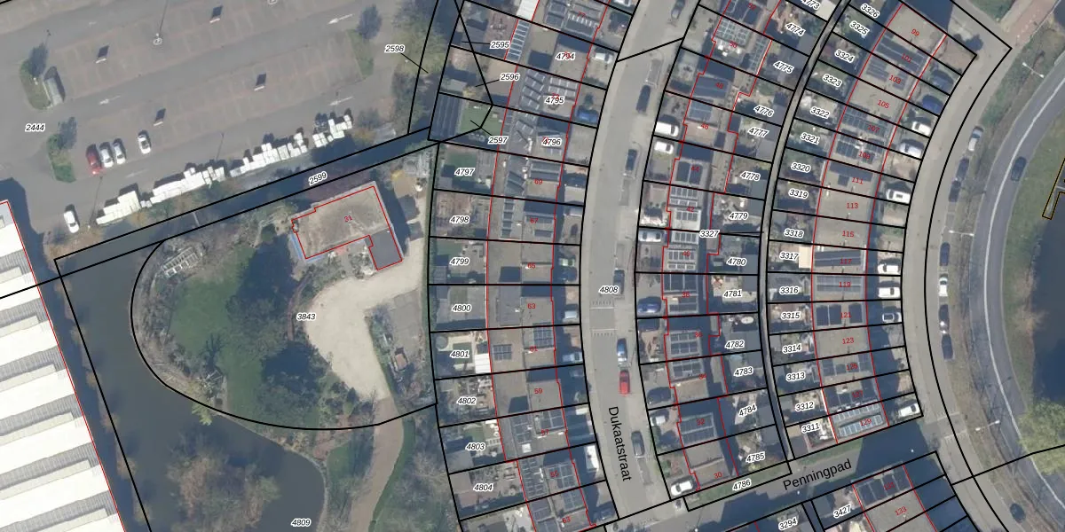 Gebruik de zoekbalk of klik op een perceel voor informatie over de adressen binnen dit perceel.