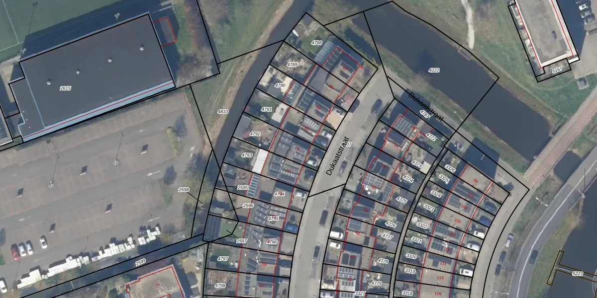 Dukaatstraat 79 is gelegen op kadastraal perceel PAK00G4792. Deze kadastrale aanduiding is uniek en wordt gebruikt door het Kadaster om eigendomsrechten en andere zakelijke rechten vast te leggen. Het perceel maakt onderdeel uit van de kadastrale gemeente Pijnacker.