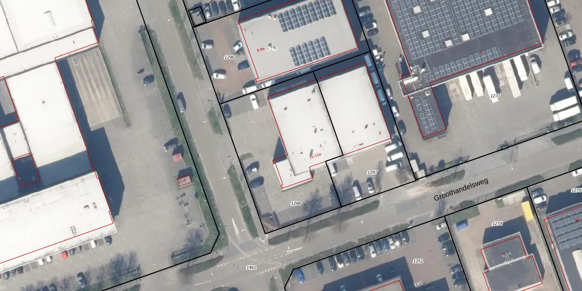 Het perceel waarop Exportweg 11-a staat heeft een oppervlakte van 1509 m². Dit is een zeer groot perceel. De perceeloppervlakte wordt geregistreerd door het Kadaster. Gedetailleerde informatie over de maten van dit perceel kunt u vinden in het rapport Kadastrale kaart met maatvoering van Exportweg 11-a.