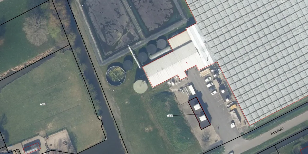 Het perceel waarop Kooltuin 1 staat heeft een oppervlakte van 5,6 ha. Dit is een zeer groot perceel. De perceeloppervlakte wordt geregistreerd door het Kadaster. Gedetailleerde informatie over de maten van dit perceel kunt u vinden in het rapport Kadastrale kaart met maatvoering van Kooltuin 1.