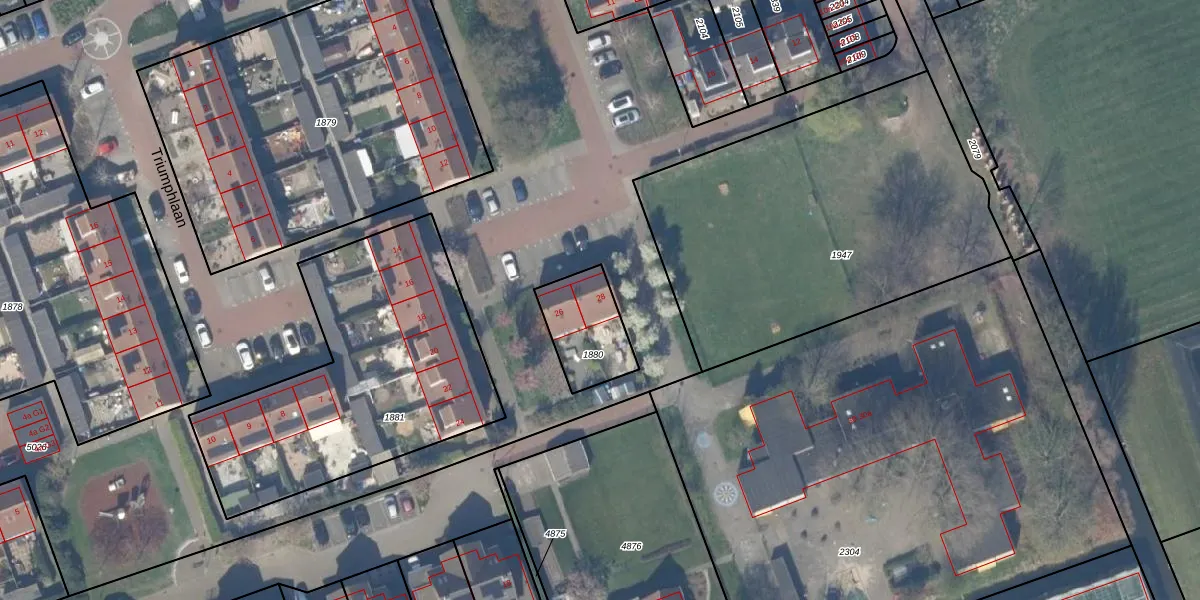 Het adres is gelegen op perceel 1880 in de sectie G en de kadastrale gemeente Pijnacker. De kadastrale aanduiding is aldus PAK00-G-1880. Het perceel is 223 m² groot. Dat is kleiner dan de gemiddelde perceeloppervlakte in Pijnacker, dat op 1796,62 m² ligt. Het grootste perceel in de kadastrale gemeente is 20,5 ha. Het kleinste perceel heeft een oppervlakte van 0 m². Er zijn 2 adressen aanwezig op het perceel. De huidige grenzen van het perceel zijn digitaal in de Basisregistratie Kadaster (BRK) geregistreerd op 02-10-2001.