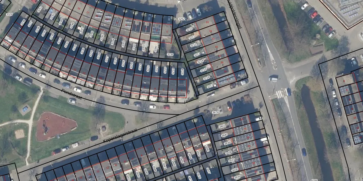 Gebruik de zoekbalk of klik op een perceel voor informatie over de adressen binnen dit perceel.