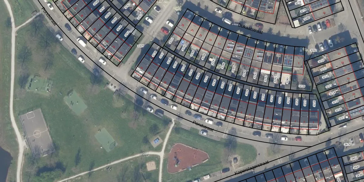 Gebruik de zoekbalk of klik op een perceel voor informatie over de adressen binnen dit perceel.