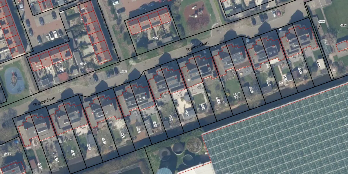 Renovalaan 10 is gelegen op kadastraal perceel PAK00G4936. Deze kadastrale aanduiding is uniek en wordt gebruikt door het Kadaster om eigendomsrechten en andere zakelijke rechten vast te leggen. Het perceel maakt onderdeel uit van de kadastrale gemeente Pijnacker.