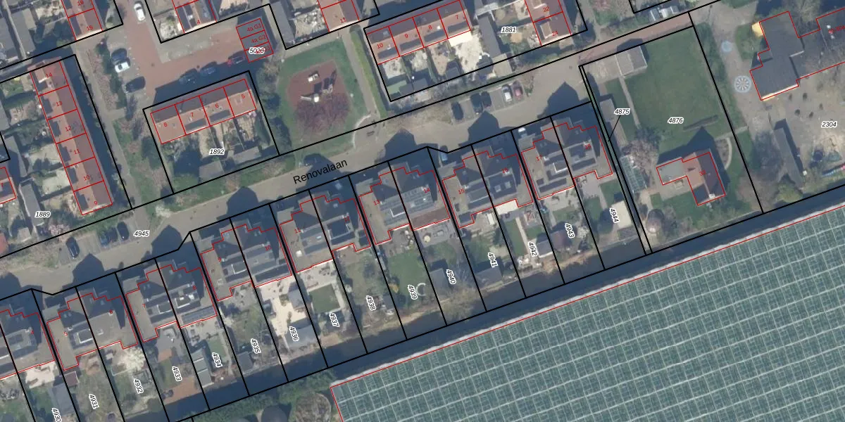 Renovalaan 14 is gelegen op kadastraal perceel PAK00G4940. Deze kadastrale aanduiding is uniek en wordt gebruikt door het Kadaster om eigendomsrechten en andere zakelijke rechten vast te leggen. Het perceel maakt onderdeel uit van de kadastrale gemeente Pijnacker.