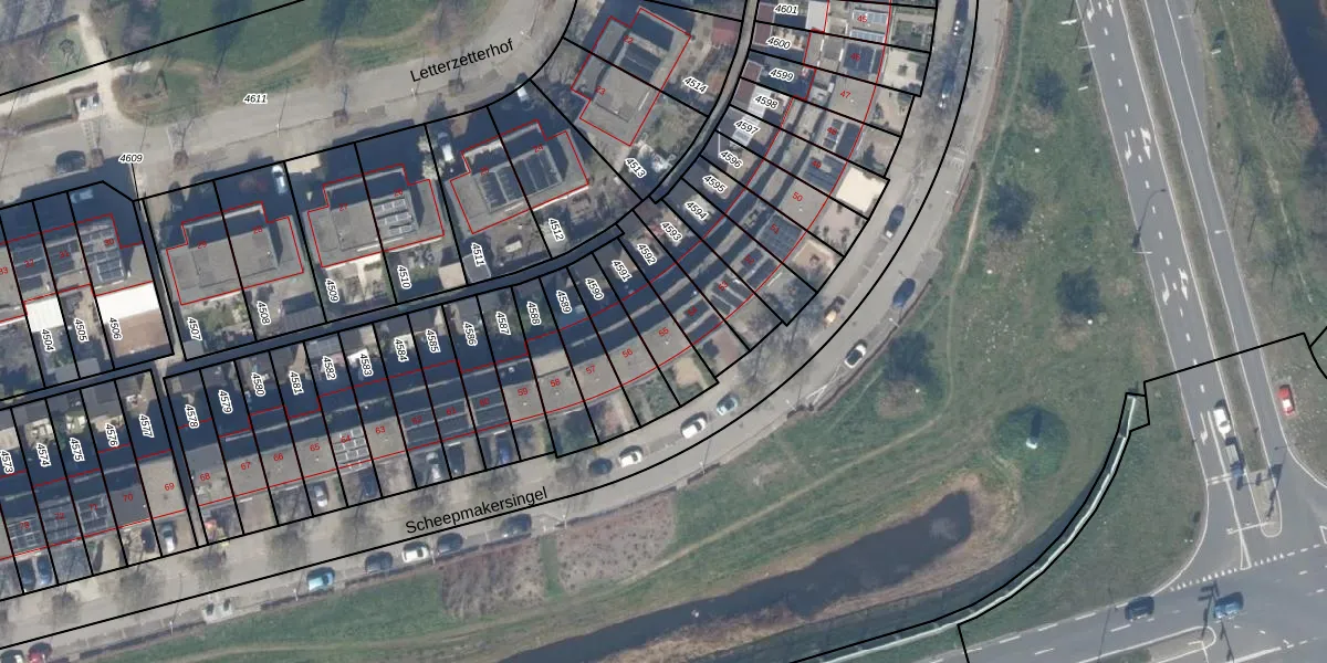 Gebruik de zoekbalk of klik op een perceel voor informatie over de adressen binnen dit perceel.