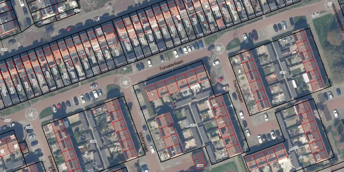 Tomatenlaan 9 is gelegen op kadastraal perceel PAK00G1878. Deze kadastrale aanduiding is uniek en wordt gebruikt door het Kadaster om eigendomsrechten en andere zakelijke rechten vast te leggen. Het perceel maakt onderdeel uit van de kadastrale gemeente Pijnacker.