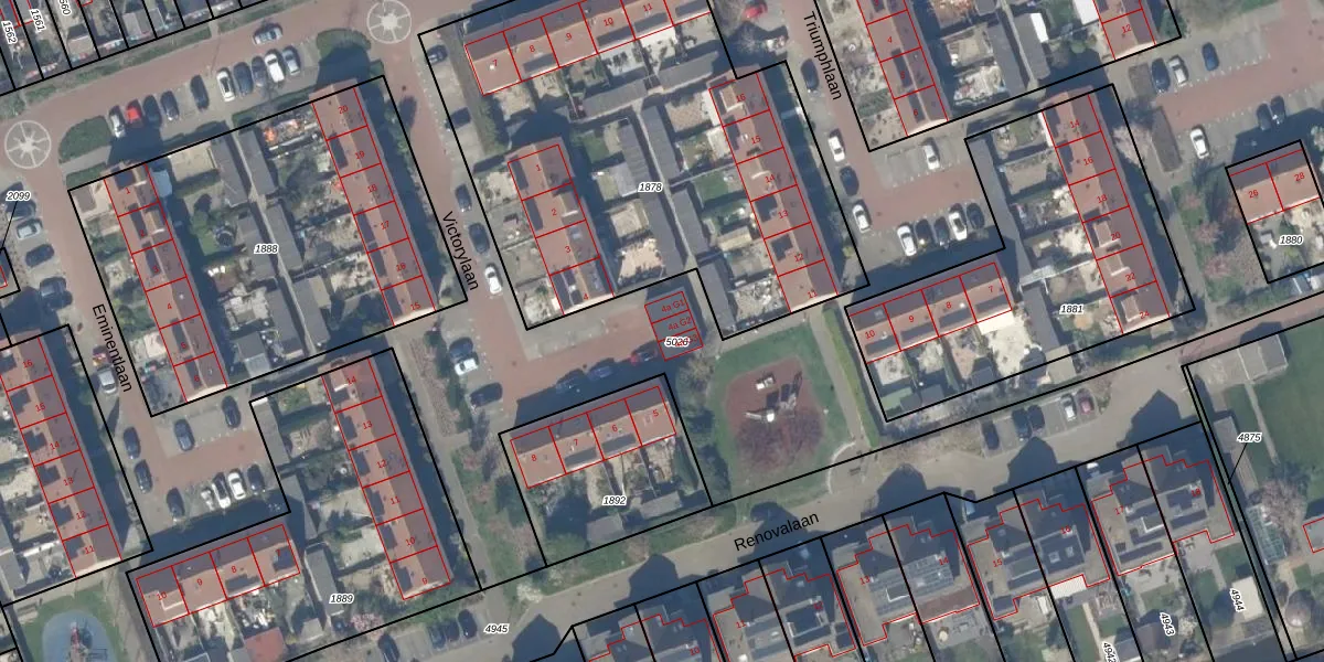 Het perceel waarop Victorylaan 4-a-G2 staat heeft een oppervlakte van 1,6 ha. Dit is een zeer groot perceel. De perceeloppervlakte wordt geregistreerd door het Kadaster. Gedetailleerde informatie over de maten van dit perceel kunt u vinden in het rapport Kadastrale kaart met maatvoering van Victorylaan 4-a-G2.