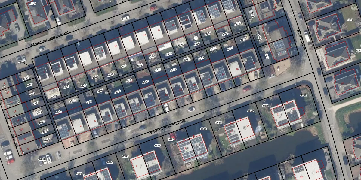 Weesmeesterstraat 18 is gelegen op kadastraal perceel PAK00G4672. Deze kadastrale aanduiding is uniek en wordt gebruikt door het Kadaster om eigendomsrechten en andere zakelijke rechten vast te leggen. Het perceel maakt onderdeel uit van de kadastrale gemeente Pijnacker.