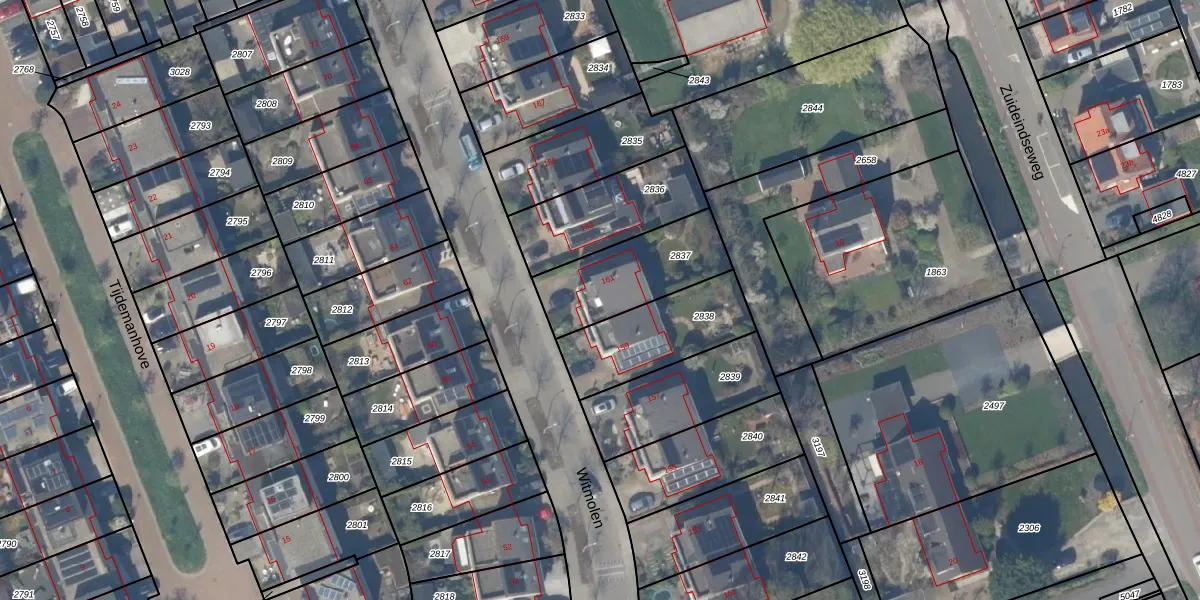 Gebruik de zoekbalk of klik op een perceel voor informatie over de adressen binnen dit perceel.