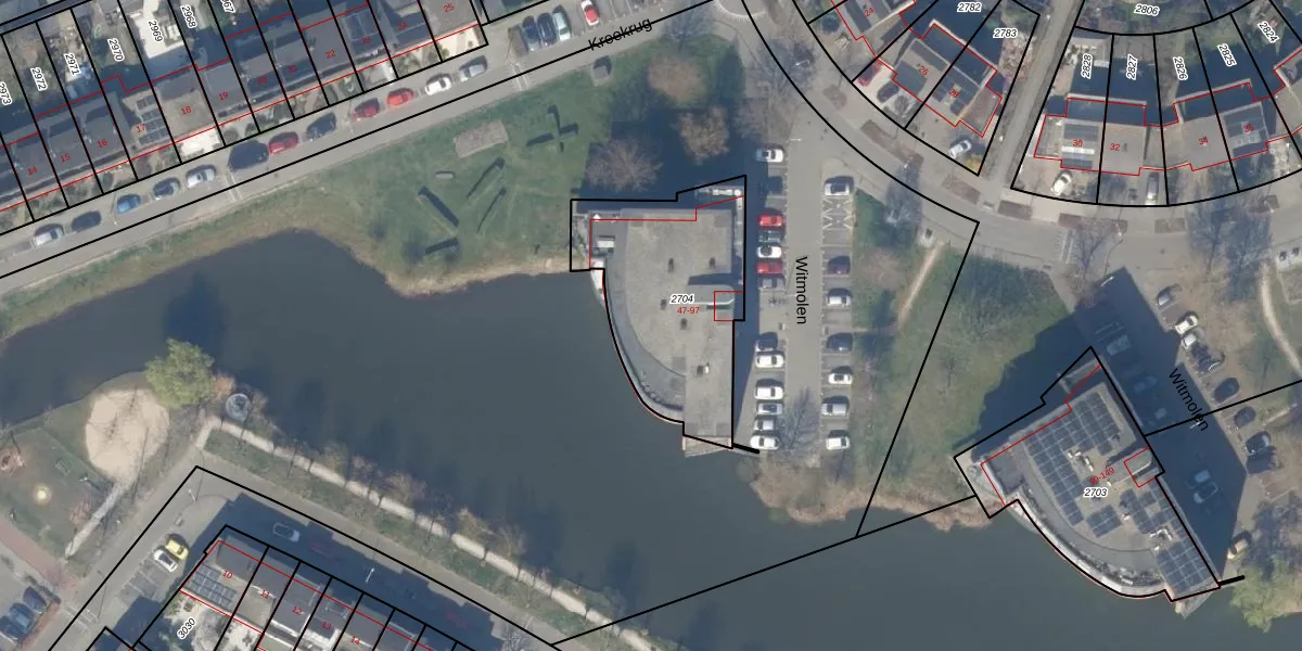 Het perceel waarop Witmolen 89 staat heeft een oppervlakte van 742 m². Dit is een groot perceel. De perceeloppervlakte wordt geregistreerd door het Kadaster. Gedetailleerde informatie over de maten van dit perceel kunt u vinden in het rapport Kadastrale kaart met maatvoering van Witmolen 89.