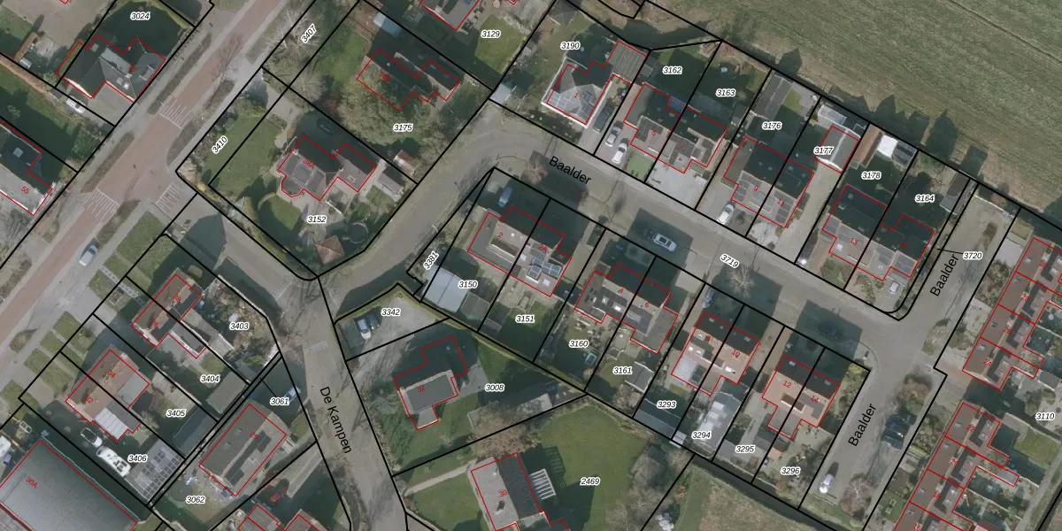 Het perceel waarop Baalder 2-A staat heeft een oppervlakte van 340 m². Dit is een groot perceel. De perceeloppervlakte wordt geregistreerd door het Kadaster. Gedetailleerde informatie over de maten van dit perceel kunt u vinden in het rapport Kadastrale kaart met maatvoering van Baalder 2-A.