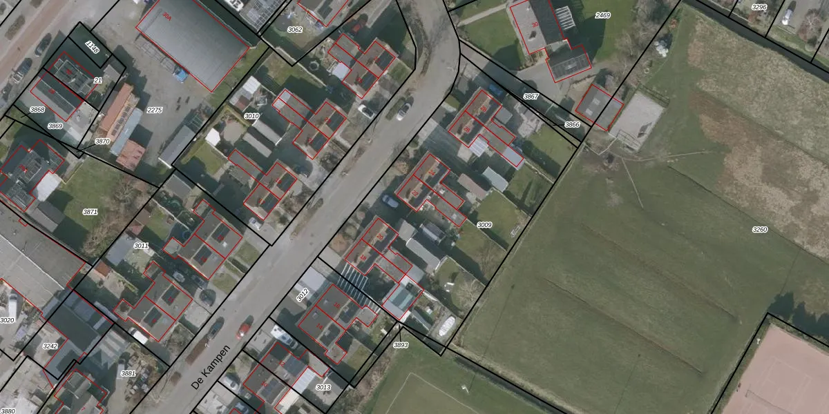 Het perceel waarop De Kampen 22 staat heeft een oppervlakte van 2112 m². Dit is een zeer groot perceel. De perceeloppervlakte wordt geregistreerd door het Kadaster. Gedetailleerde informatie over de maten van dit perceel kunt u vinden in het rapport Kadastrale kaart met maatvoering van De Kampen 22.