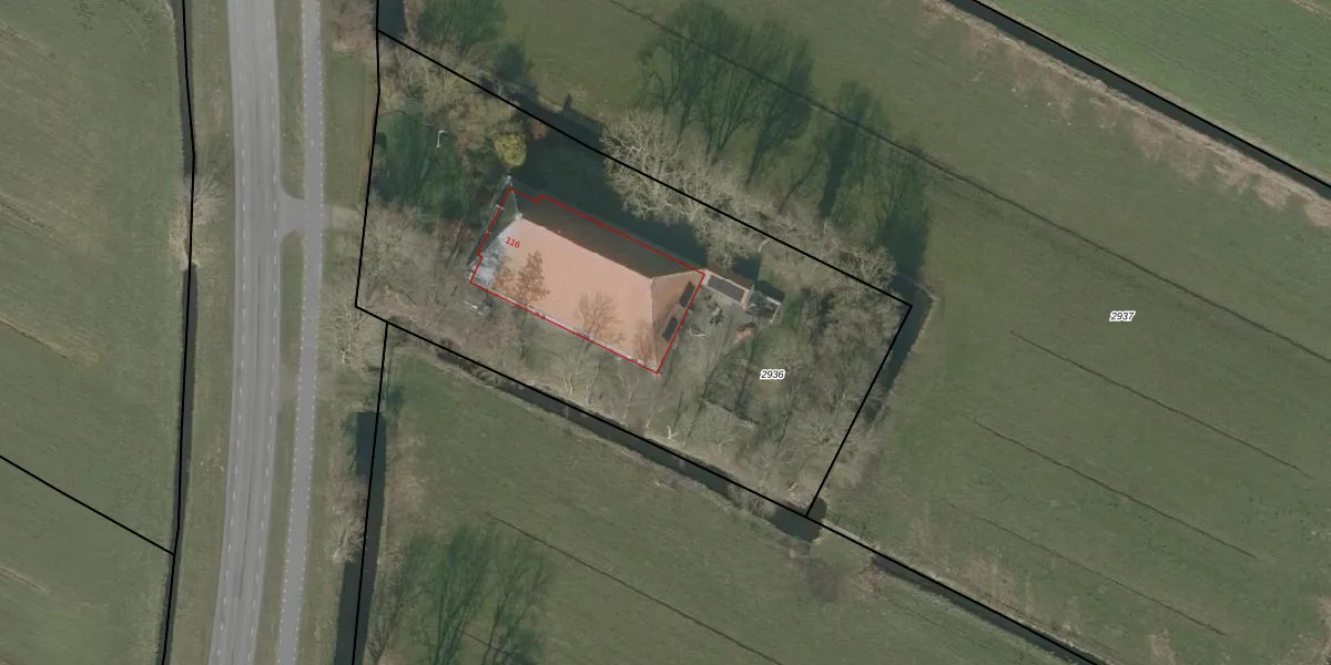 Marwei 116 is gelegen op kadastraal perceel OTZ00I2936. Deze kadastrale aanduiding is uniek en wordt gebruikt door het Kadaster om eigendomsrechten en andere zakelijke rechten vast te leggen. Het perceel maakt onderdeel uit van de kadastrale gemeente Oosterzee.