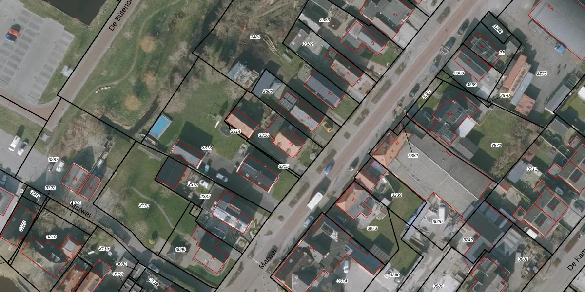 Het perceel waarop Marwei 35 staat heeft een oppervlakte van 426 m². Dit is een groot perceel. De perceeloppervlakte wordt geregistreerd door het Kadaster. Gedetailleerde informatie over de maten van dit perceel kunt u vinden in het rapport Kadastrale kaart met maatvoering van Marwei 35.