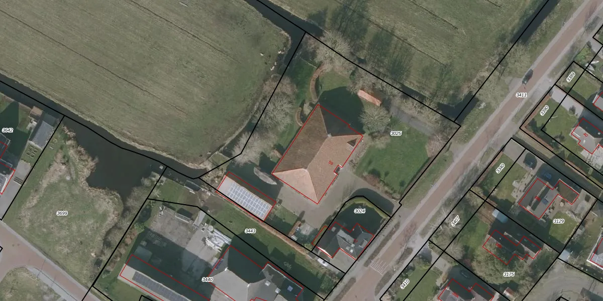 Het adres is gelegen op perceel 3025 in de sectie I en de kadastrale gemeente Oosterzee. De kadastrale aanduiding is aldus OTZ00-I-3025. Het perceel is kleiner dan gemiddeld in Oosterzee. Het perceel is 3065 m² groot, terwijl het gemiddelde ligt op 1,7 ha. Het kleinste perceel in de kadastrale gemeente is 0 m² groot. De grootste perceeloppervlakte is 6,33 km². Dit is het enige adres dat aanwezig is op het perceel. In de Basisregistratie Kadaster (BRK) werden de grenzen van het perceel geregistreerd op 27-08-2010.