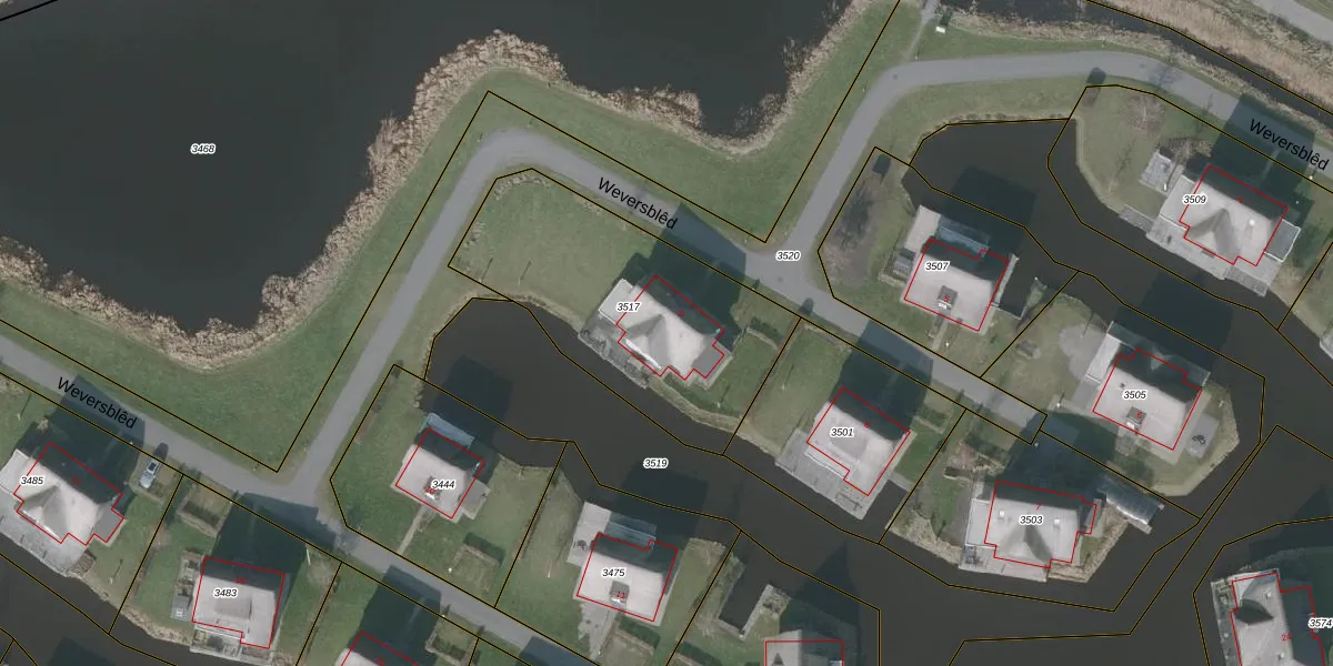 Het perceel waarop Weversblêd 9 staat heeft een oppervlakte van 1085 m². Dit is een zeer groot perceel. De perceeloppervlakte wordt geregistreerd door het Kadaster. Gedetailleerde informatie over de maten van dit perceel kunt u vinden in het rapport Kadastrale kaart met maatvoering van Weversblêd 9.