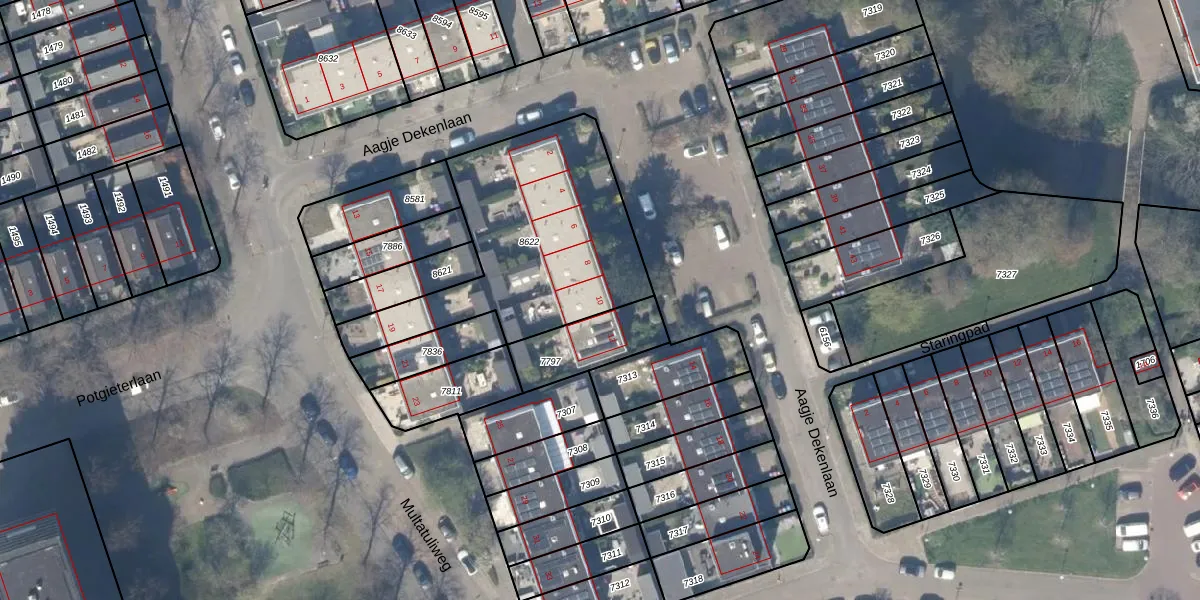 Aagje Dekenlaan 10 is gelegen op kadastraal perceel DEL00R8622. Deze kadastrale aanduiding is uniek en wordt gebruikt door het Kadaster om eigendomsrechten en andere zakelijke rechten vast te leggen. Het perceel maakt onderdeel uit van de kadastrale gemeente Delft.
