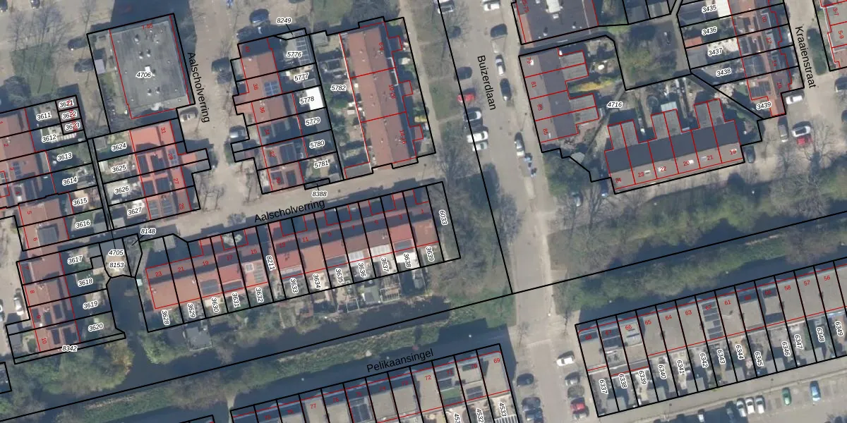 Gebruik de zoekbalk of klik op een perceel voor informatie over de adressen binnen dit perceel.