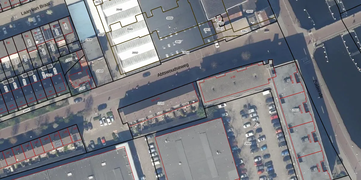 Abtswoudseweg 103 is gelegen op kadastraal perceel DEL00O2191. Deze kadastrale aanduiding is uniek en wordt gebruikt door het Kadaster om eigendomsrechten en andere zakelijke rechten vast te leggen. Het perceel maakt onderdeel uit van de kadastrale gemeente Delft.