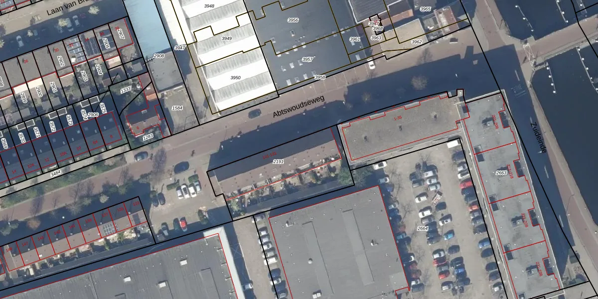 Abtswoudseweg 121 is gelegen op kadastraal perceel DEL00O2191. Deze kadastrale aanduiding is uniek en wordt gebruikt door het Kadaster om eigendomsrechten en andere zakelijke rechten vast te leggen. Het perceel maakt onderdeel uit van de kadastrale gemeente Delft.