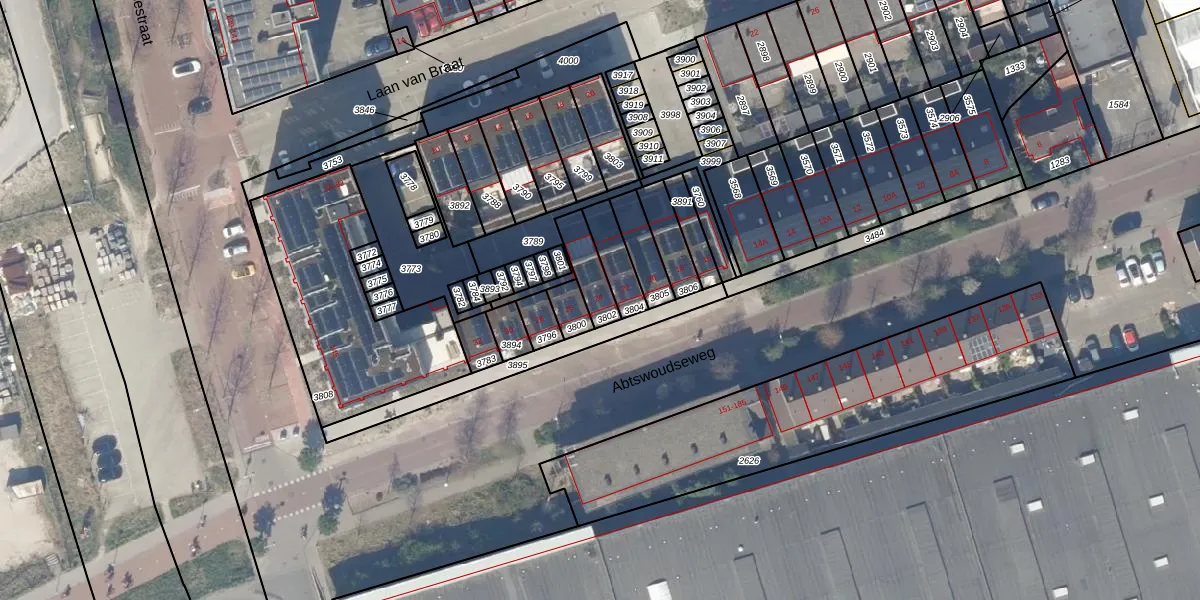 Abtswoudseweg 24 is gelegen op kadastraal perceel DEL00O3802. Deze kadastrale aanduiding is uniek en wordt gebruikt door het Kadaster om eigendomsrechten en andere zakelijke rechten vast te leggen. Het perceel maakt onderdeel uit van de kadastrale gemeente Delft.