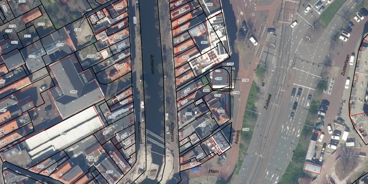 Het perceel waarop Achterom 103 staat heeft een oppervlakte van 93 m². Dit is een klein perceel. De perceeloppervlakte wordt geregistreerd door het Kadaster. Gedetailleerde informatie over de maten van dit perceel kunt u vinden in het rapport Kadastrale kaart met maatvoering van Achterom 103.