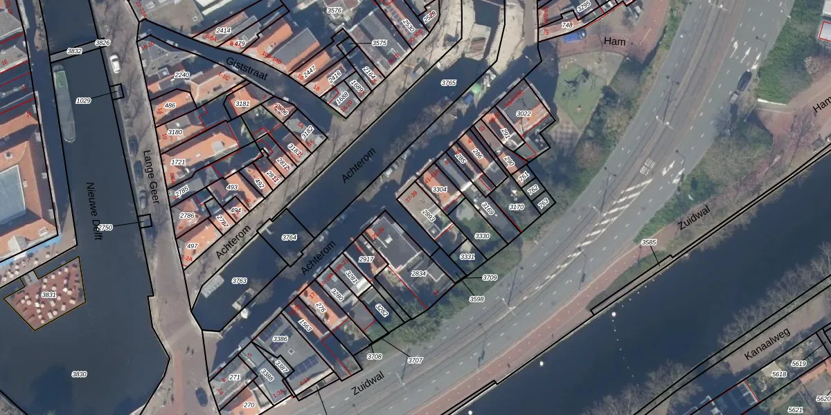 Achterom 37 is gelegen op kadastraal perceel DEL00E2893. Deze kadastrale aanduiding is uniek en wordt gebruikt door het Kadaster om eigendomsrechten en andere zakelijke rechten vast te leggen. Het perceel maakt onderdeel uit van de kadastrale gemeente Delft.