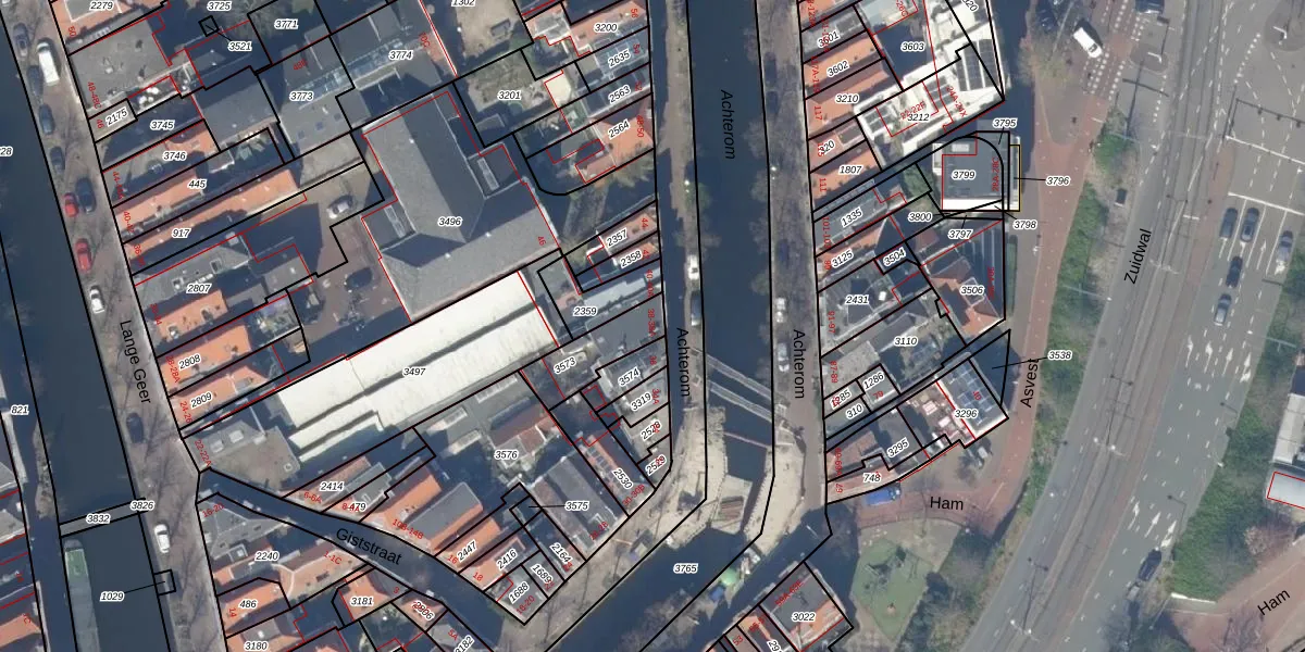 Achterom 38-A is gelegen op kadastraal perceel DEL00E3573. Deze kadastrale aanduiding is uniek en wordt gebruikt door het Kadaster om eigendomsrechten en andere zakelijke rechten vast te leggen. Het perceel maakt onderdeel uit van de kadastrale gemeente Delft.
