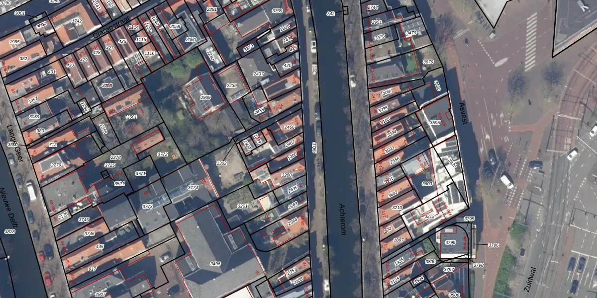 Het perceel waarop het adres ligt is DEL00-E-1700. De afkorting 'DEL00' staat voor kadastrale gemeente Delft. Het perceel is 55 m² groot. Dat is kleiner dan de gemiddelde perceeloppervlakte in Delft, dat op 924,62 m² ligt. De grootste perceeloppervlakte in de kadastrale gemeente is 64,1 ha. De kleinste oppervlakte bedraagt 0 m². Op het perceel zijn 2 adressen aanwezig. De huidige grenzen van het perceel zijn digitaal in de Basisregistratie Kadaster (BRK) geregistreerd op 09-05-2012.