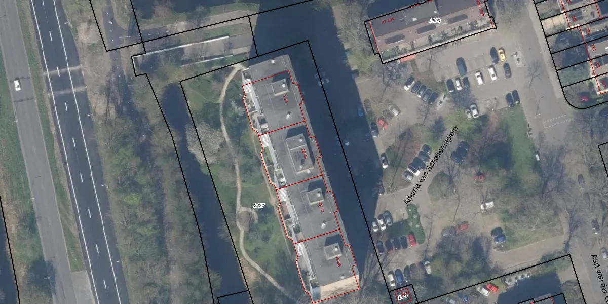 Adama van Scheltemaplein 43 is gelegen op kadastraal perceel DEL00R2427. Deze kadastrale aanduiding is uniek en wordt gebruikt door het Kadaster om eigendomsrechten en andere zakelijke rechten vast te leggen. Het perceel maakt onderdeel uit van de kadastrale gemeente Delft.