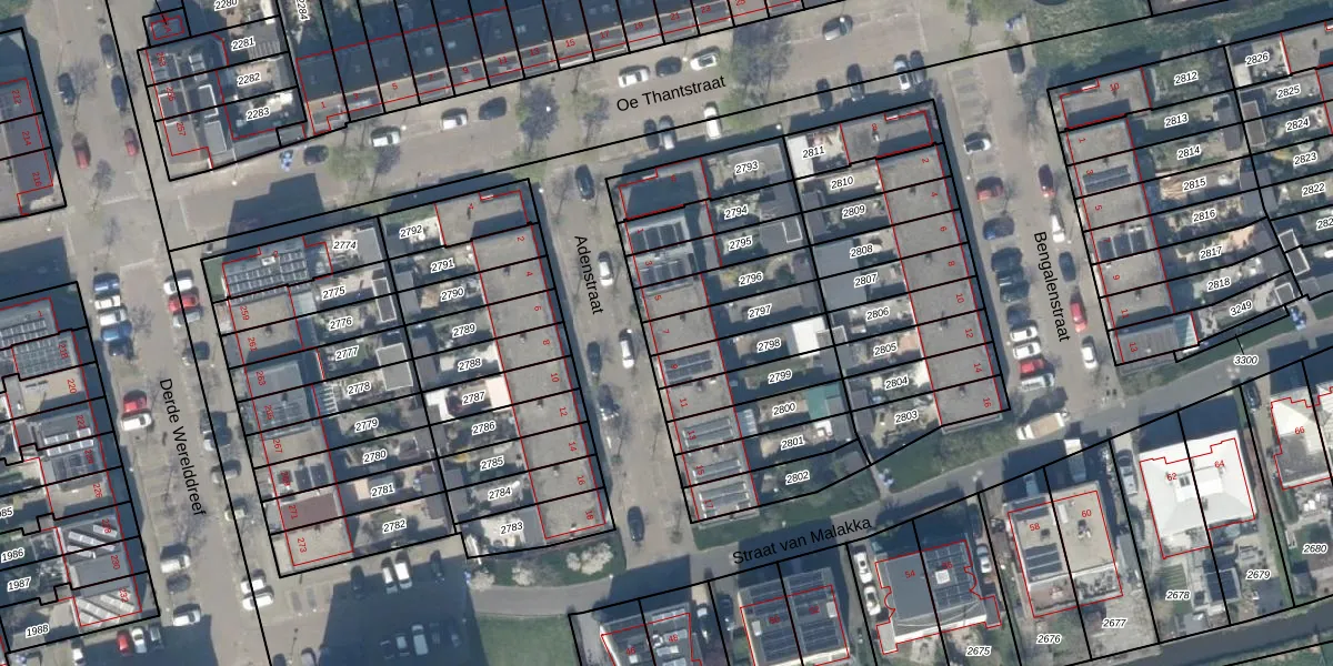 Gebruik de zoekbalk of klik op een perceel voor informatie over de adressen binnen dit perceel.