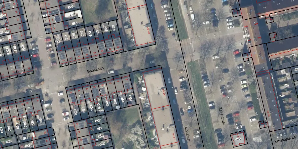 Het perceel waarop Afrikalaan 142 staat heeft een oppervlakte van 1650 m². Dit is een zeer groot perceel. De perceeloppervlakte wordt geregistreerd door het Kadaster. Gedetailleerde informatie over de maten van dit perceel kunt u vinden in het rapport Kadastrale kaart met maatvoering van Afrikalaan 142.