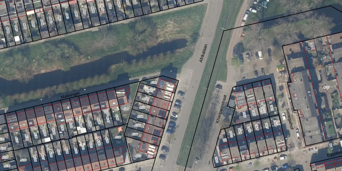 Afrikalaan 2 is gelegen op kadastraal perceel DEL00R4150. Deze kadastrale aanduiding is uniek en wordt gebruikt door het Kadaster om eigendomsrechten en andere zakelijke rechten vast te leggen. Het perceel maakt onderdeel uit van de kadastrale gemeente Delft.