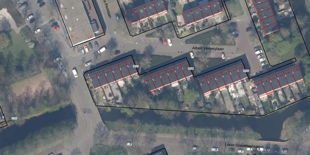 Albert Verweylaan 16 is gelegen op kadastraal perceel DEL00R1695. Deze kadastrale aanduiding is uniek en wordt gebruikt door het Kadaster om eigendomsrechten en andere zakelijke rechten vast te leggen. Het perceel maakt onderdeel uit van de kadastrale gemeente Delft.